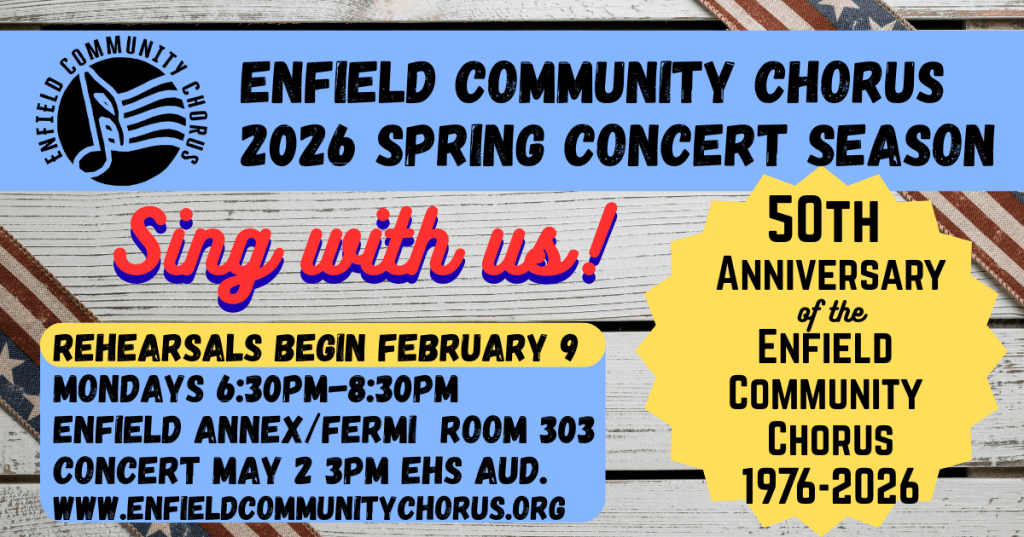 If you are interested in more about the chorus or have any questions, please email us at EnfieldCommunityChorus@gmail.com or call us at 860-580-9668.