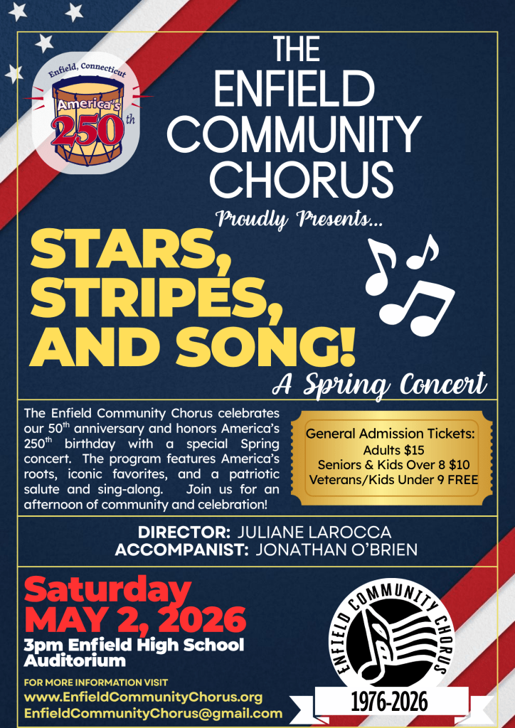 If you are interested in more about the chorus or have any questions, please email us at EnfieldCommunityChorus@gmail.com or call us at 860-580-9668.